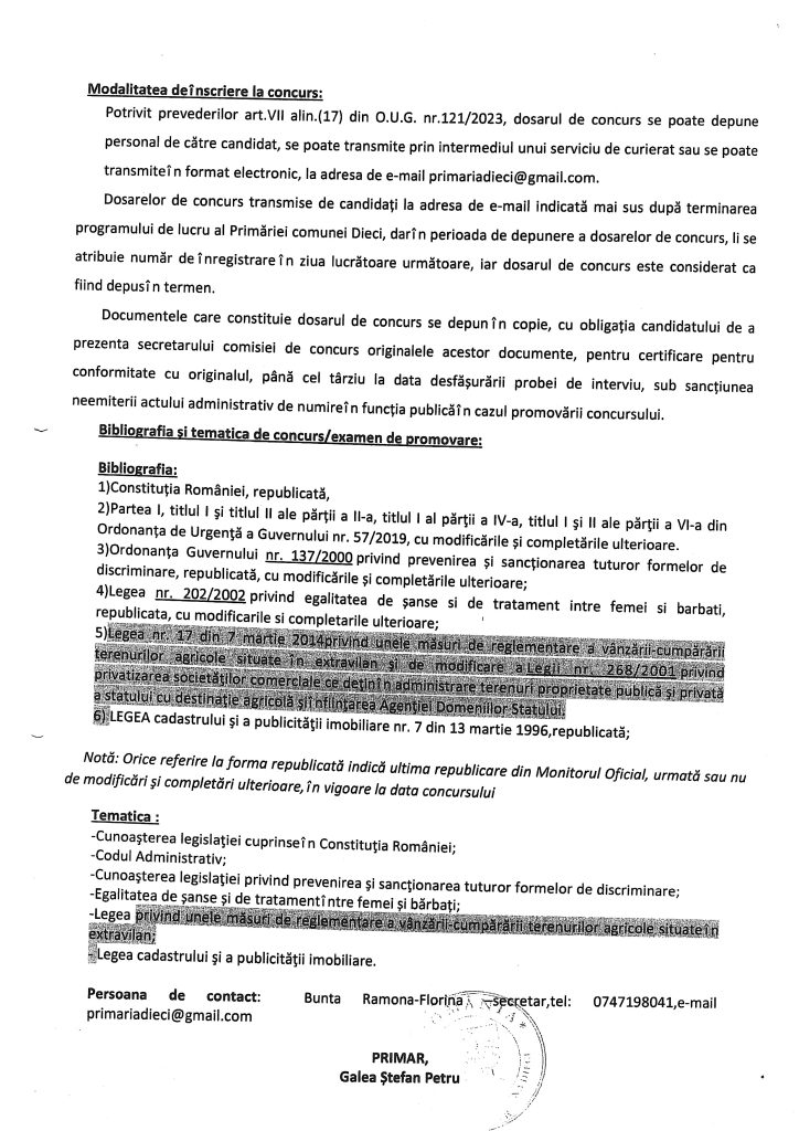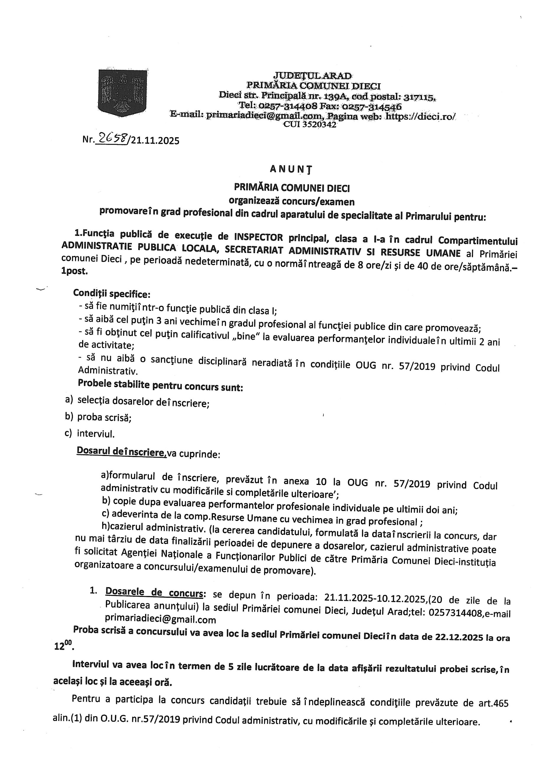 ANUNȚ organizare examen promovare în grad profesional din cadrul aparatului de specialitate al Primarului